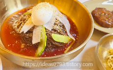비빔메밀냉면과 비교했을때에는 비빔메밀냉면이 매콤하니 더 맛있었습니다